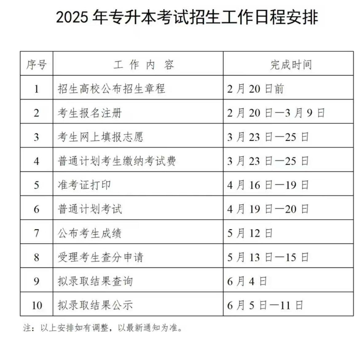 2月20日-3月9日考生报名注册,3月23日-25日考生网上填报志愿,4月19日-20日普通计划考试……日前,湖南省教育考试院发布《关于做好2025年普通高校专升本考试招生报名工作的通知》。
